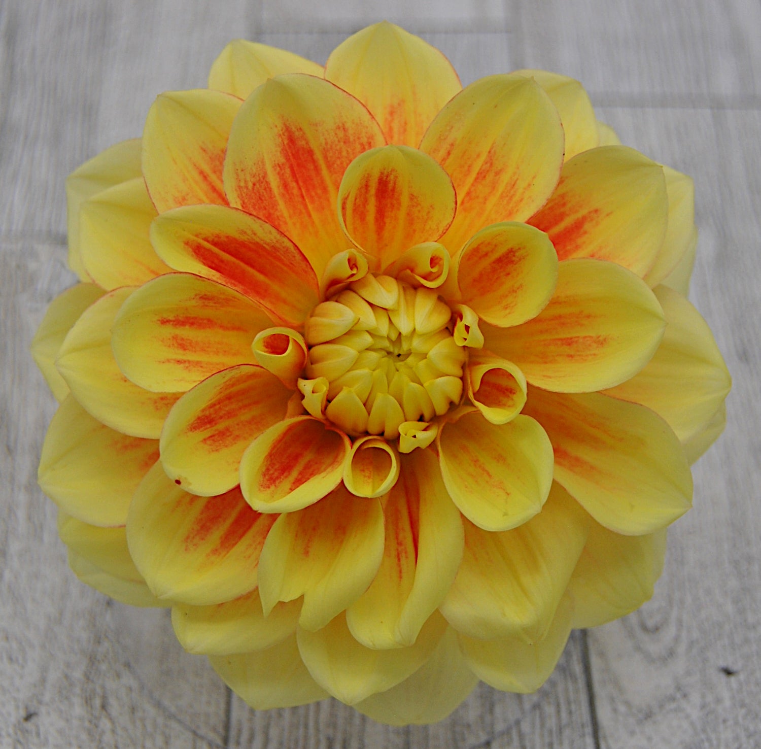 Bellefleur is a bright and cheerful heritage dahlia has stood the test of time. The bright yellow and peachy orange color makes it a fun addition to any arrangement