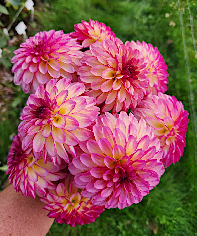 Foxy Lady is just that! A Formal Decorative with up to 4 inch blooms. The dusty rose with cream/yellow highlighted blooms and a deeper rose-mauve reverse on the back of the petals grows on a 4 foot plant with good stems.
